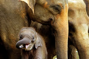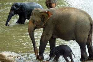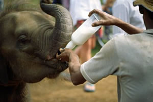 Having started with only five baby elephant orphans, Pinnawela is by far a large orphanage now and is quite well known worldwide. In 1978 the Orphanage was taken over by the National Zoological Gardens and a captive breeding program was launched in 1982. Babies are fed with milk twice a day and older ones with various types of leaves.