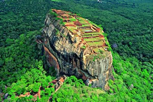 Sigiriya, the 'Lion Rock', is a sixth century fortress perched on a 200 metre high rock and is visible for miles around. This wondrous site holds the ruins of the capital built by King Kassapa I (477-495 A.D.) on the steep slopes and at the summit of this granite peak. Following Kassapa's death it reverted to being a monastery complex until about the 14th century, after which it was abandoned. The ruins were discovered in 1907 by British explorer John Still. This World Heritage Site, holds the remains of an upper palace on the flat top of the rock, a mid level terrace with its Lion Gate and the mirror wall with its frescoes of the 'Heavenly Maidens'. In addition, there is the lower palace on the slopes below the rock, and the moats, walls and gardens that extend for some hundreds of metres surrounding the base of the rock.