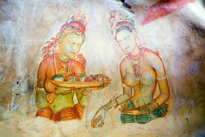 It is worth a trip to Sri Lanka if only to visit Sigiriya alone. The summit of the rock looks seemingly inaccessible. However, a pathway on the western and northern sides of the steep rock face provides access to the nearly three acres wide summit. Shielding this pathway is a 9½ft plaster wall so highly polished that it is a wonder that even today after fifteen centuries of exposure to the sun and rain one can see one's reflection in it! Winding one's way to the top, one comes across these world famous charming frescoes which are an attraction by themselves keeping visitors engrossed in even their cutest details.