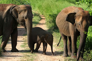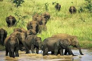 This popular reserve is inhabited by more than 400 wild elephants. The open habitat makes is easy for visitors to view these elephants at close range. There are leopards, spotted deer, sambhur, wild boars, gray langurs, Toque Monkeys, golden jackals, water buffaloes and crocodiles and 30 varieties of snakes. The open parkland attracts birds of prey. Uda Walawe National Park includes a wide diversity of bird life.